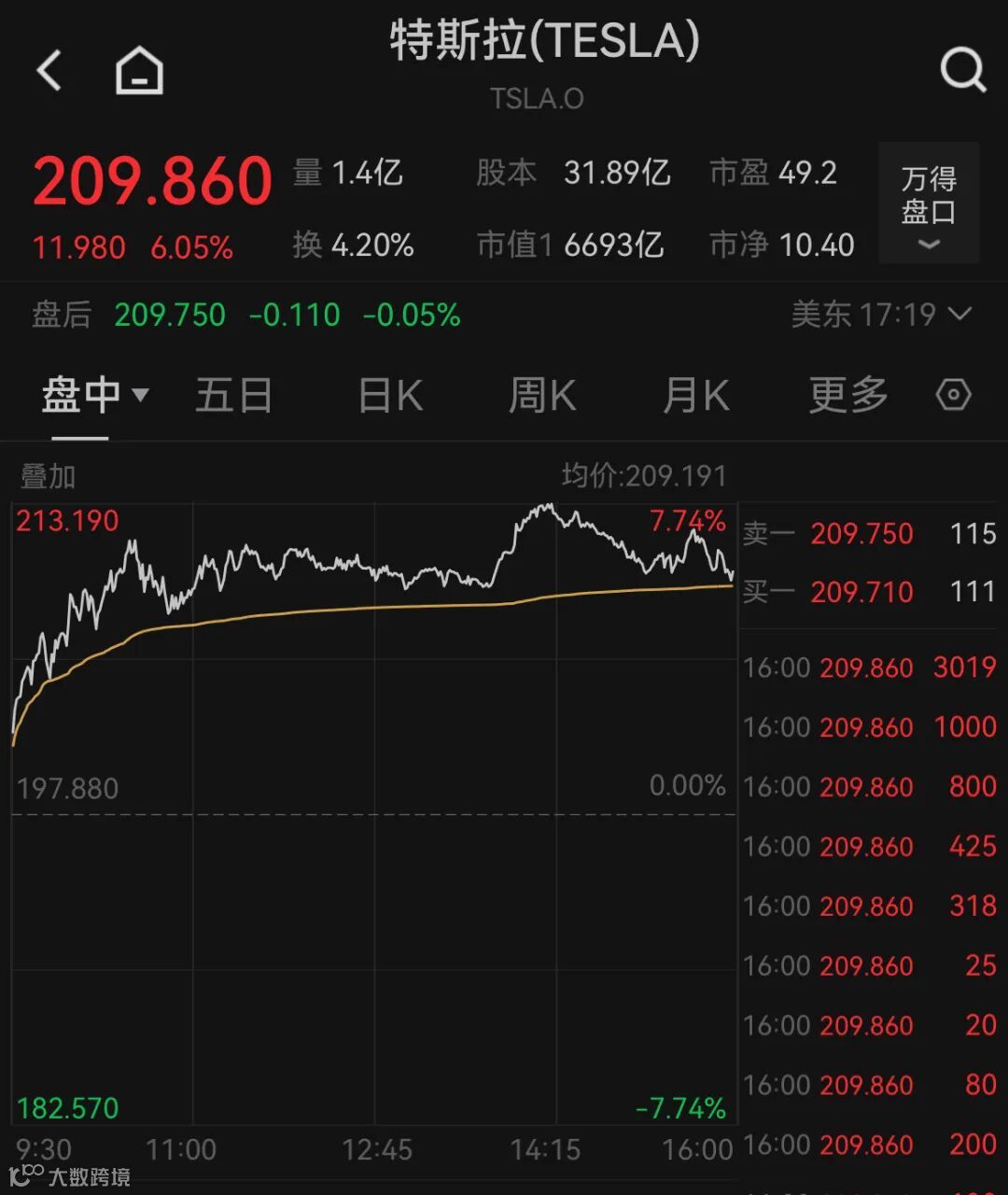 涨2.04%,奈飞跌0.19%,谷歌涨0.46%,微软涨2.19%。