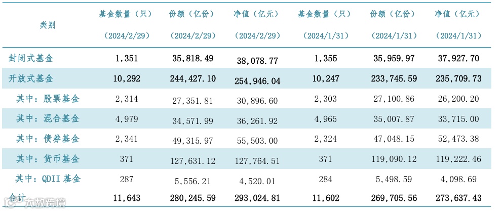 不过,从今年整体来看,权益基金也是公募基金规模增长的重要“助推器”。2月底,公募基金资产净值合计为29.3万亿元,这一数据刷新了当时的历史纪录。各类基金均为规模增长做出贡献,其中,权益类基金2月规模增加7000多亿元,债券基金单月增3000多亿元,货币基金2月规模增量超过8500亿元。