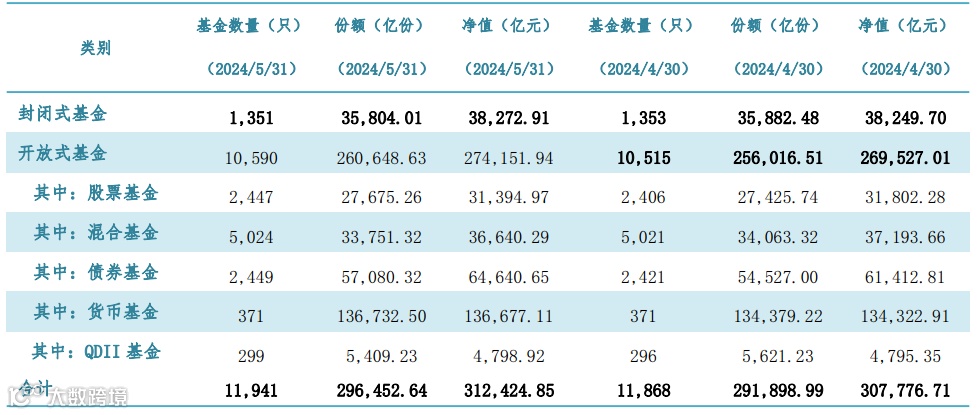 6月27日,基金业协会发布的数据显示,截至5月底,公募基金资产净值合计达31.24万亿元,这是公募基金规模继4月底首次突破30万亿元大关后,再创新高。