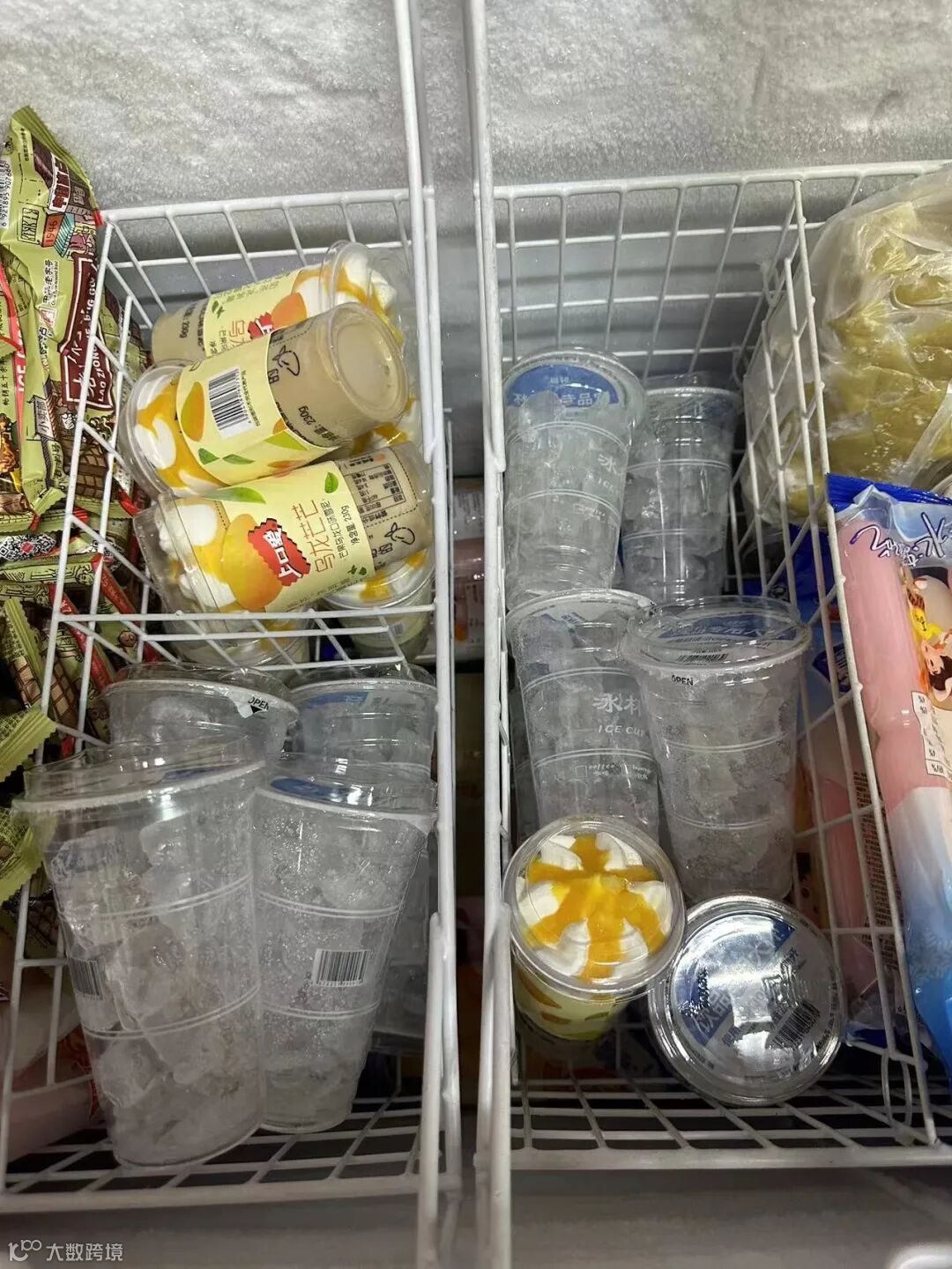 超市冰柜中陈列的冰杯 本报记者 董添 摄