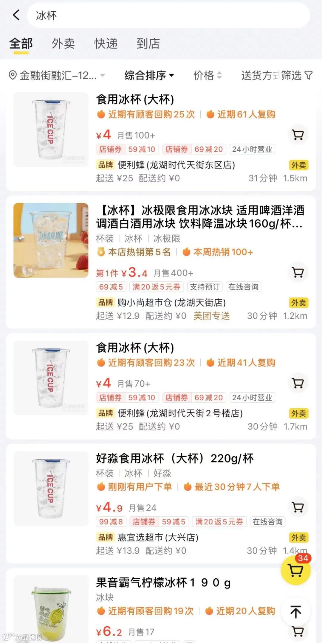 外卖平台在售的冰杯 来源:外卖APP
