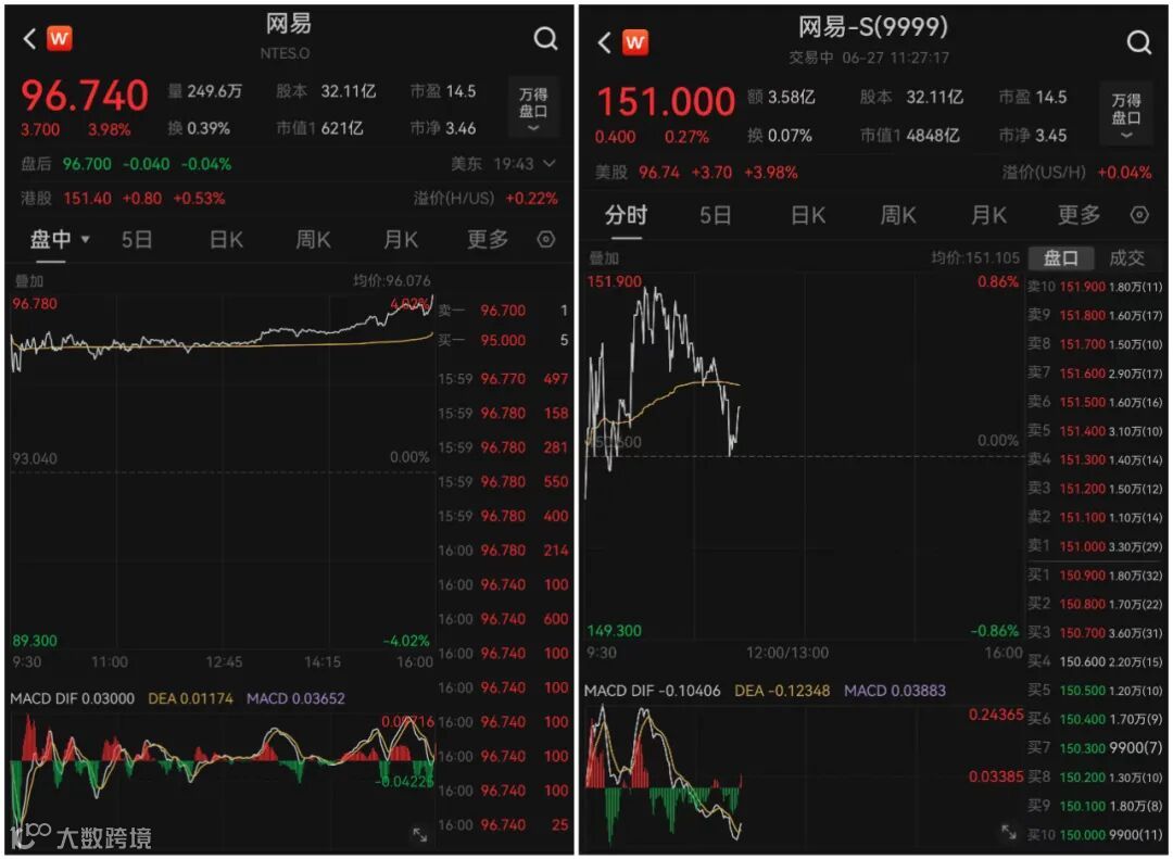 昨夜,网易美股大涨近4%。今天上午, 网易港股逆市上涨。