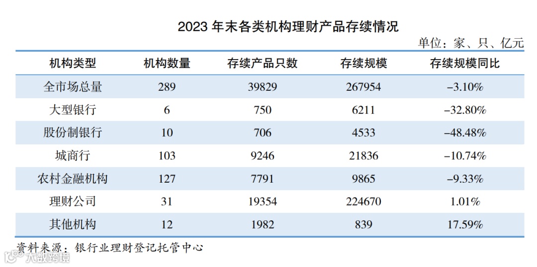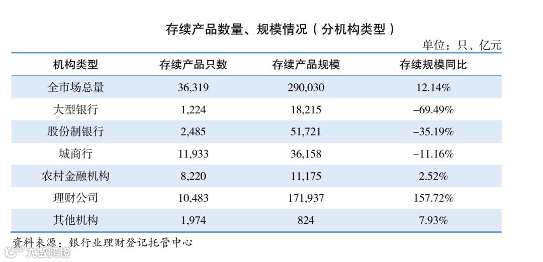 2021年末各类机构理财产品存续情况