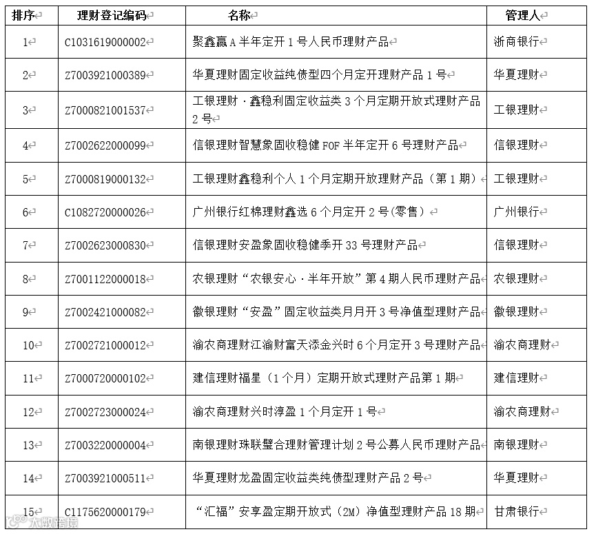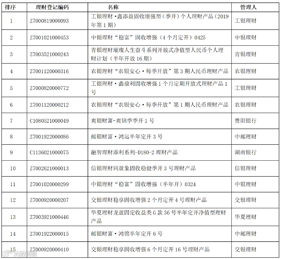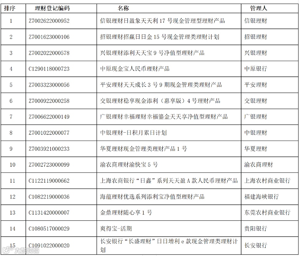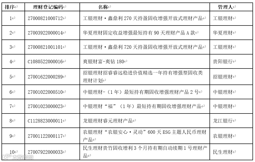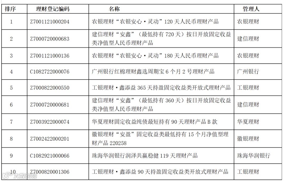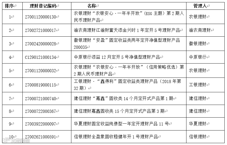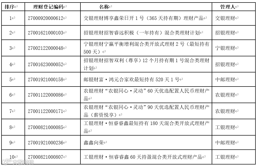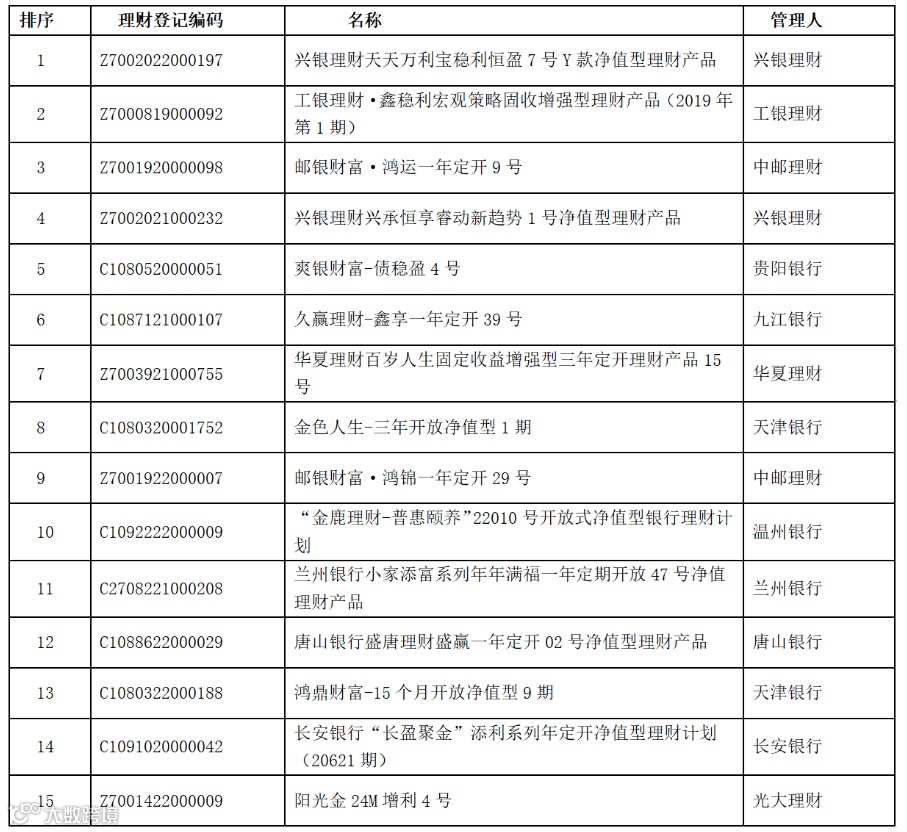 (产品分类说明参见附录一:《开放式银行理财产品分类》;产品指标计算说明参见附录二:《主要计算指标说明》; 排名评价体系说明参见附录三:《各指标计算权重及排名体系》)