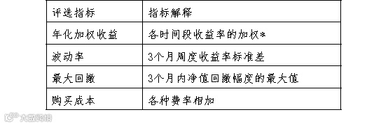 自公布日之前的一年产品单位净值或万份收益均纳入排名指标计算范围。主要指标如下表所示: