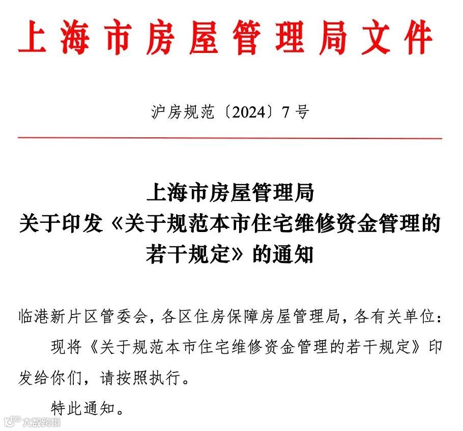 市房屋管理局发布关于印发《关于规范本市住宅维修资金管理的若干规定》的通知。《规定》涉及上海市住宅物业管理区域内维修资金的归集、使用和管理。《规定》自2024年10月1日起施行,有效期至2029年6月30日。