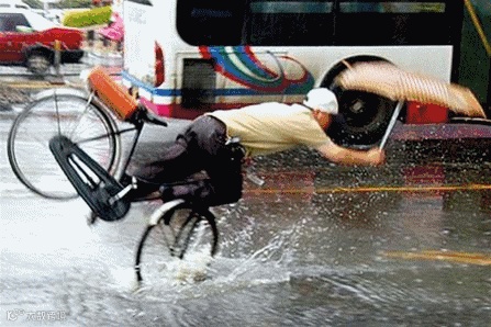 雨量很大的时候,街道上的井盖极有可能会被冲走,此时涉水,非常危险!