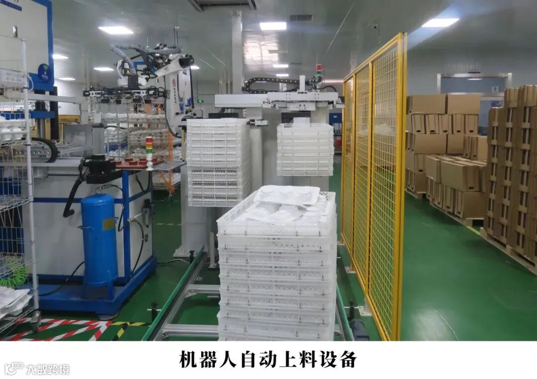 工厂广泛应用了全自动纸浆系统成套设备、全自动成型机、成型自动收料机器人、机器人自动码垛设备、自动物流输送线等生产装备,建立了高效的高端纸浆模塑制品生产线。工厂自动化、数字化、智能化的生产装备181台套,占工厂全部设备比例超过95%,有效提高生产效率,降低人工成本,确保产品质量一致可靠,在行业中达到了国内领先水平。