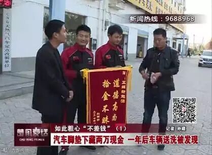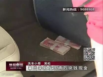 这件事情还要从10月28号说起。当天下午,两位洗车小哥在给刘先生送来的汽车做清洗时发现,在轿车副驾驶的脚垫下竟然存放着两万元现金。