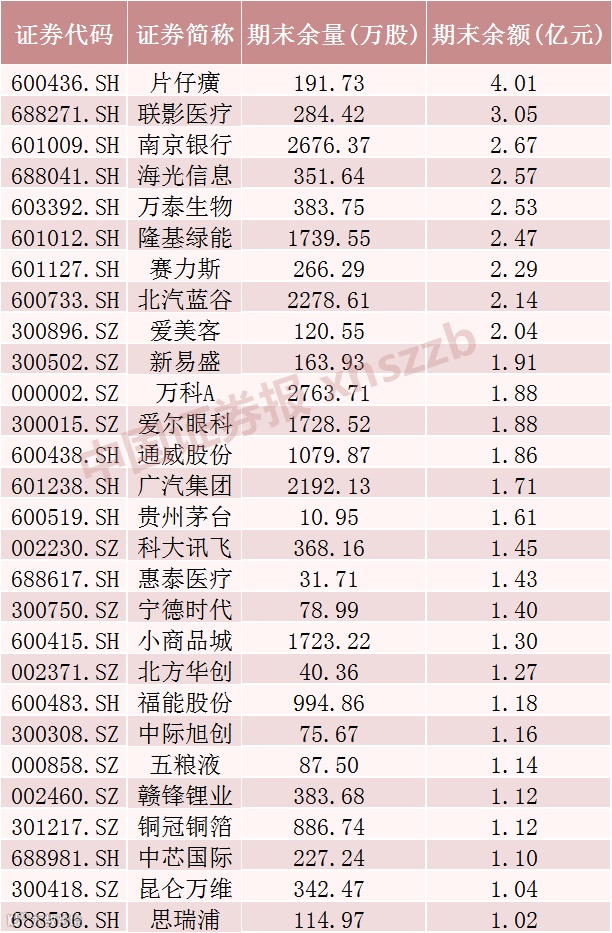 最新数据:28只股票转融券余额超1亿元