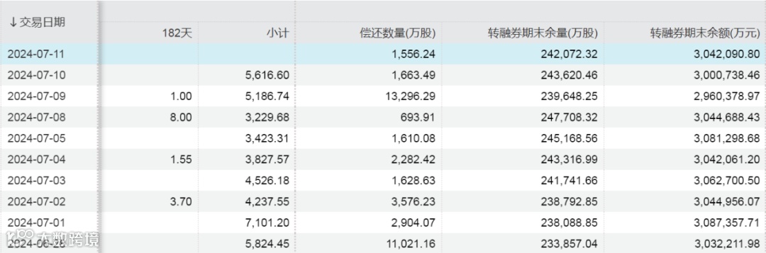 )数据显示,当日转融券交易0笔,而7月10日为2122笔,合计融出数量为5616.60万股。