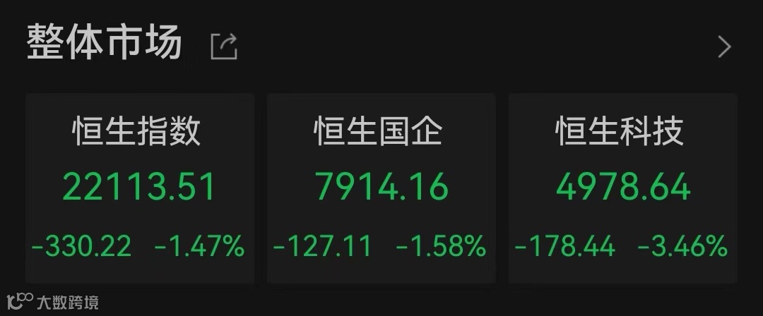 此外,阿里巴巴-W下跌4.43%,腾讯控股下跌0.81%,京东集团-W下跌7.94%。