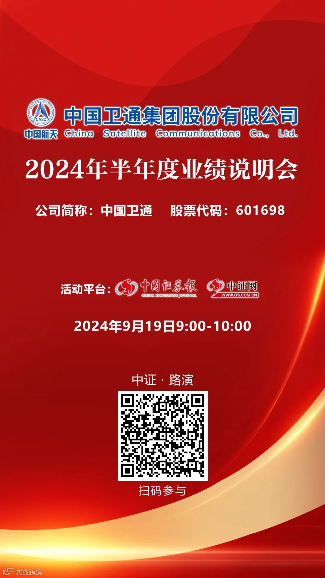 中国卫通2024年半年度业绩说明会9月19日在中证网举行