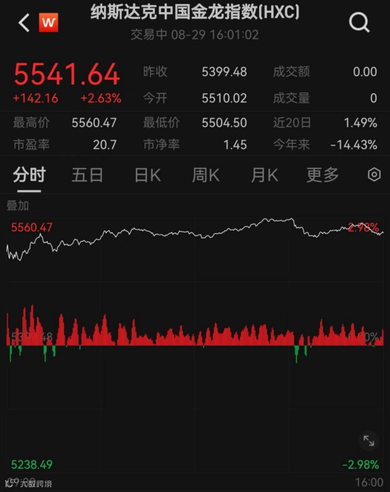 当地时间8月29日,美股高开低走,人民币资产则出现强劲上涨:人民币汇率隔夜大幅走强,在岸人民币对美元汇率盘中创出年内新高;中概股大涨,纳斯达克中国金龙指数收涨近3%,热门中概股迎普涨行情。