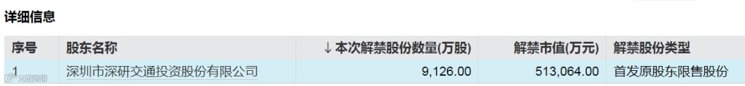 具体来看,在下周面临解禁的47只股票中,解禁市值最大的深城交解禁股东为