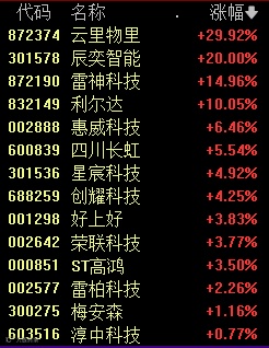 今天上午,星闪概念走强,云里物里、辰奕智能等个股大涨。