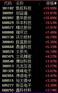 铜缆高速连接板块上午涨势最猛,凯旺科技、创益通、华丰科技等个股大涨。