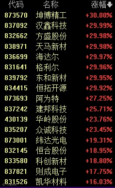 今天上午,北交所继续走强,北证50指数上午上涨5.31%,板块内30只个股涨幅超10%,8只个股迎来30%涨停。