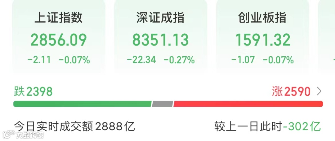 上午收盘,上证指数下跌0.07%,深证成指下跌0.27%,创业板指下跌0.07%。成交额较昨日上午减少302亿元。