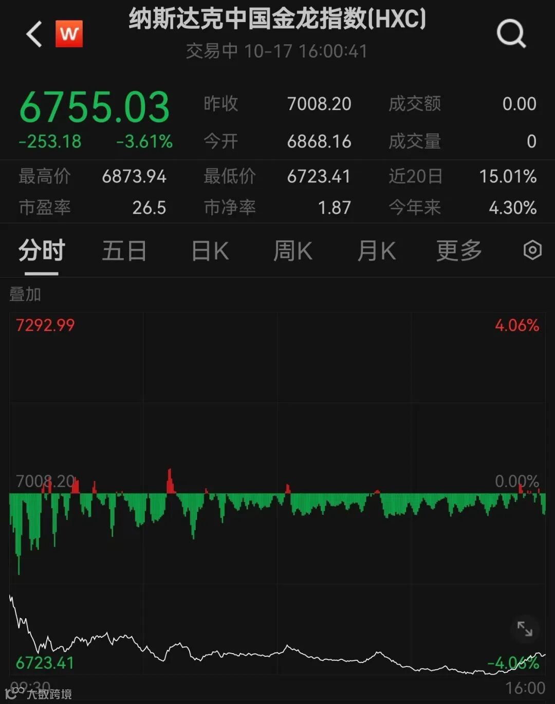 热门中概股普遍下跌,纳斯达克中国金龙指数收跌3.61%。贝壳跌逾11%,虎牙直播跌逾10%,名创优品、小鹏汽车均跌逾7%,蔚来跌超6%,哔哩哔哩、大全新能源、微博、理想汽车均跌逾5%。