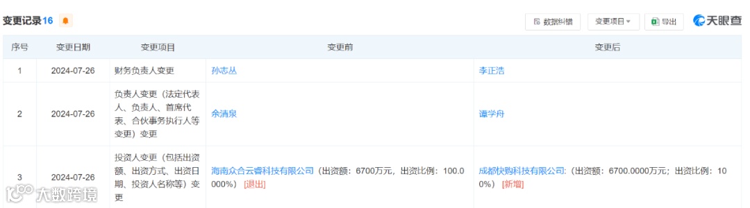 众合云联科技有限公司发生股东信息变更,由海南众合云睿科技有限公司全资控股变更为