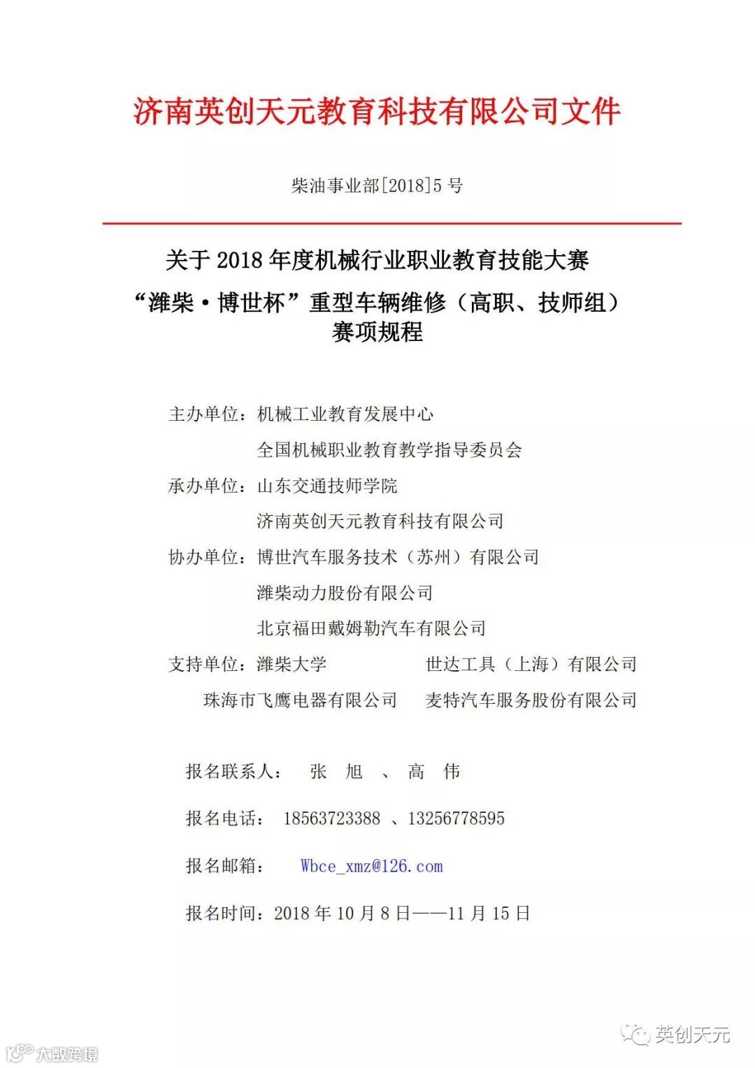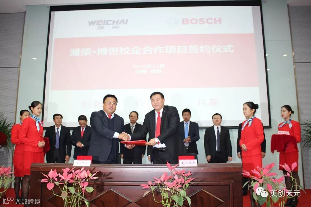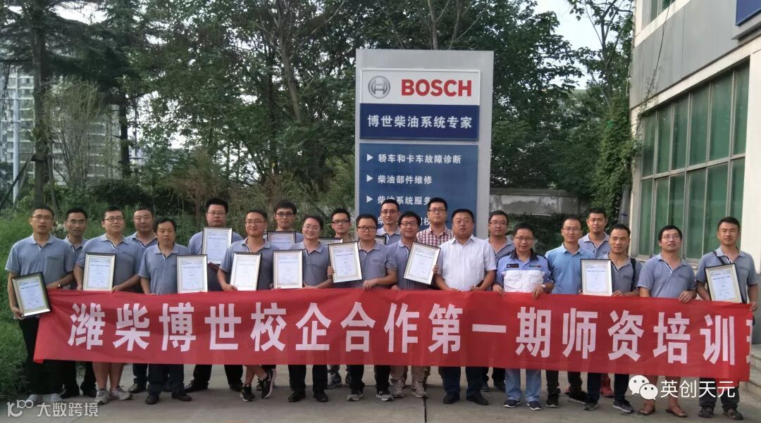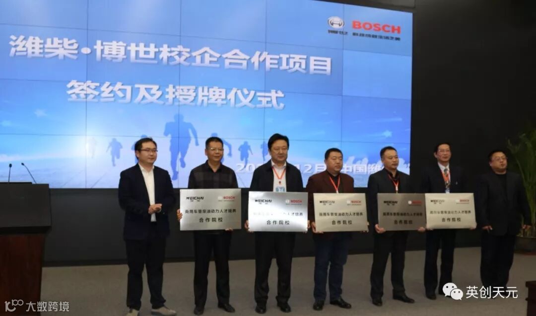 2016年11月,潍柴动力股份有限公司与博世公司在校企合作、人才培养方面达成共识,并由潍柴动力李绍华先生和博世公司安道夫先生分别代表各自企业签署了战略合作协议。双方愿依托各自在柴油动力领域的地位和技术,共同打造先进的柴油后市场人才培养体系。2017年初成立潍柴·博世校企合作项目组,双方共同委派济南英创天元教育科技有限公司作为全国唯一运营推广单位,全面推进柴油动力专业人才培养计划,为中国商用车、农用机械、工程机械等行业培养现代化高素质维修人才!