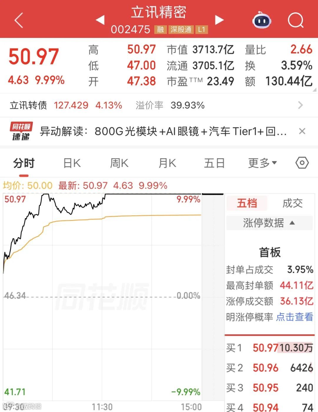 立讯精密午后涨停