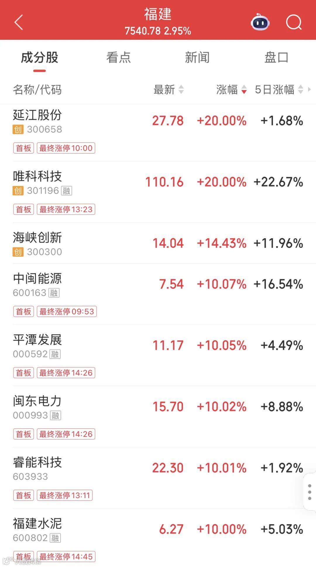 临近尾盘,福建板块异动拉升,板块内多只能源、电力股涨停,延江股份等多股涨停。