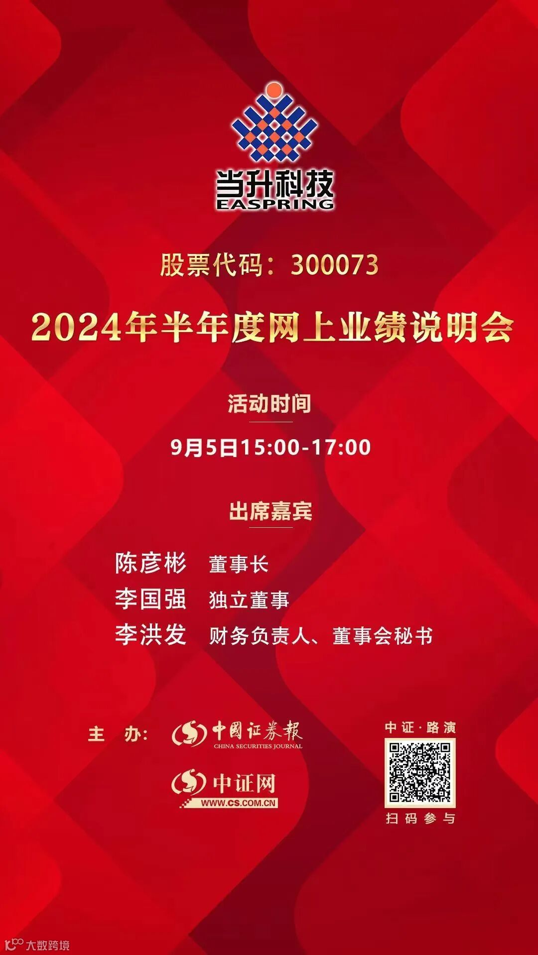 当升科技2024年半年度网上业绩说明会9月5日在中证网举行