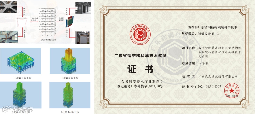 广东省钢结构科学技术奖是由广东省钢结构协会组织评选的一项科技奖项,旨在表彰在钢结构领域取得杰出成就和贡献的单位和个人。睿住天元凭借科技创新能力及科技成果转化,打造“基于智能算法的高层钢结构体系抗震性能优化设计关键技术及应用”,经专家组评审该研究成果达到整体国际先进水平,荣获2024年度广东省钢结构科学技术奖一等奖。