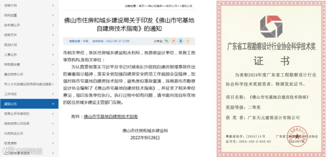 《近零碳建筑数字设计与智慧运维创新研究与应用》在建筑设计与智慧运维管理领域展开,经专家组评审达到国际先进水平,已获得17项专利授权,期刊发表论文4篇,荣获省设协科技奖二等奖。另外,睿住天元受邀担任《佛山市宅基地自建房技术指南》编辑单位,该指南已正式发布,填补了佛山市在宅基地自建房管理的空白,为防范自建房建设中恶性事故的发生奠定了基础。
