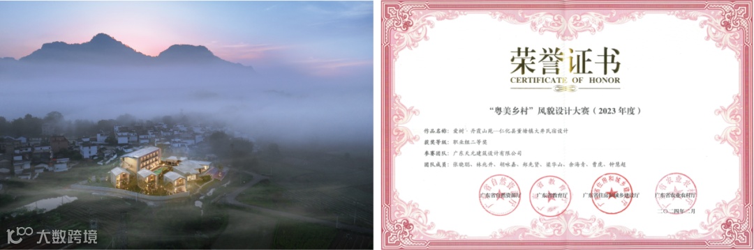 在这场旨在挖掘和展示乡村设计精髓的盛大赛事中,睿住天元两大项目「爱树·丹霞山苑——仁化县董塘镇大井民宿设计」与「仁化县董塘镇大井村景观设计」,凭借其卓越的设计理念、精湛的技术应用以及对乡村文化的深刻理解,荣获大赛二等奖。彰显了睿住天元在乡村设计领域的深厚实力与创新能力,更为我省乡村风貌的全面提升与宜居宜业和美乡村的建设贡献了宝贵的智慧与力量。