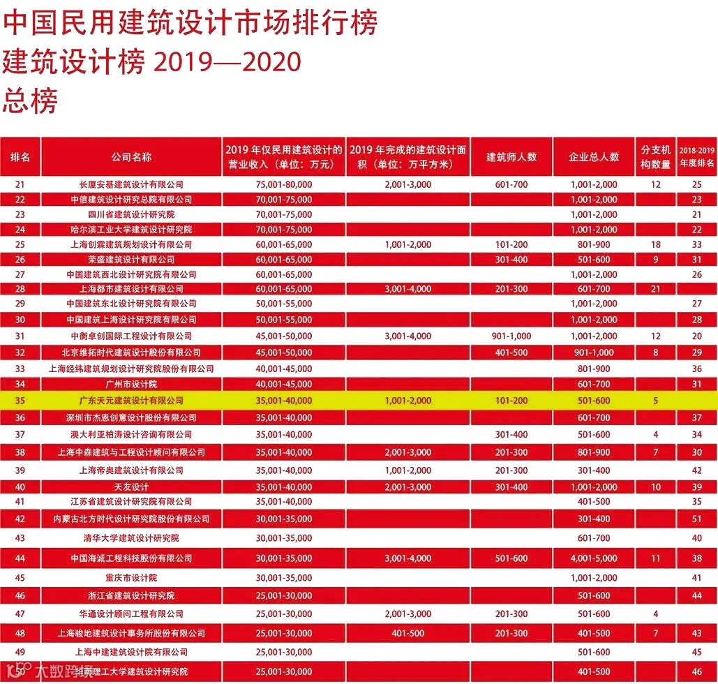 中国民用建筑设计市场排行榜第35名