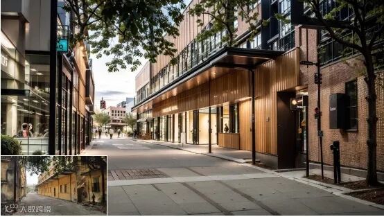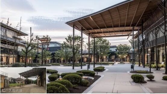 文创商业区在原有建筑的基础上,利用钢结构玻璃表皮工艺,结合新旧虚实对比的手法,保留原建筑的历史痕迹的同时,让建筑注入年轻时尚的活力。