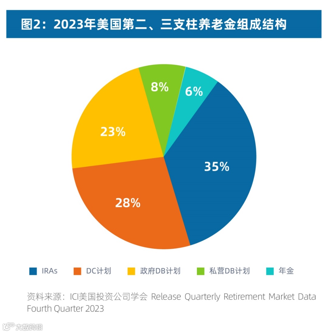 据ICI美国投资公司学会数据,DC及IRAs在美国整个养老金规模占比由2000年的48.3%,提升至2023年底的63.2%。