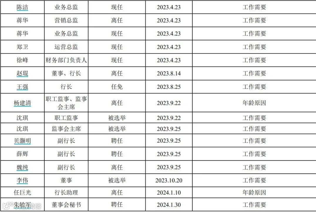 2023年以来,苏州银行高管层开启“大换血”模式,涉及董事长、行长以及多位副行长。