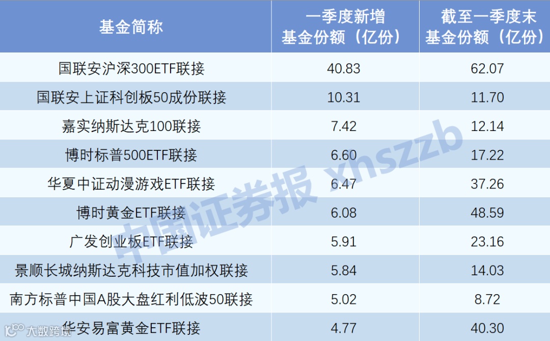 此外,在今年黄金投资热度高企的环境下,博时黄金ETF联接、华安易富黄金ETF联接今年一季度也分别获得了6.08亿份、4.77亿份的净申购。