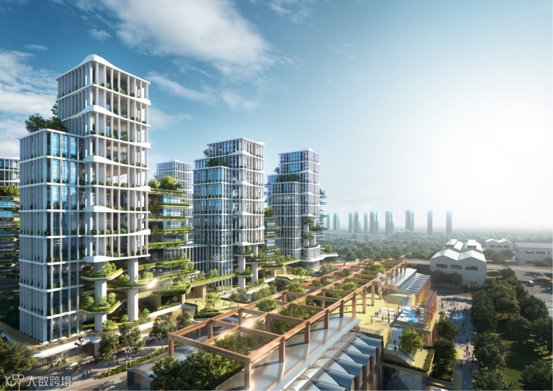 推演出“立方之间,预见未来生活”设计主题。以科技、历史、绿色为载体,通过嵌入多元复合功能板块、绿色渗透打破自然与城市的界限、智慧社区底座数字化搭建等设计手法,打造产业融合、文脉传承、居住升级、个性与品质的复合社区,符合新时代住房高质量发展“适用、经济、绿色、美观”的建筑方针。
