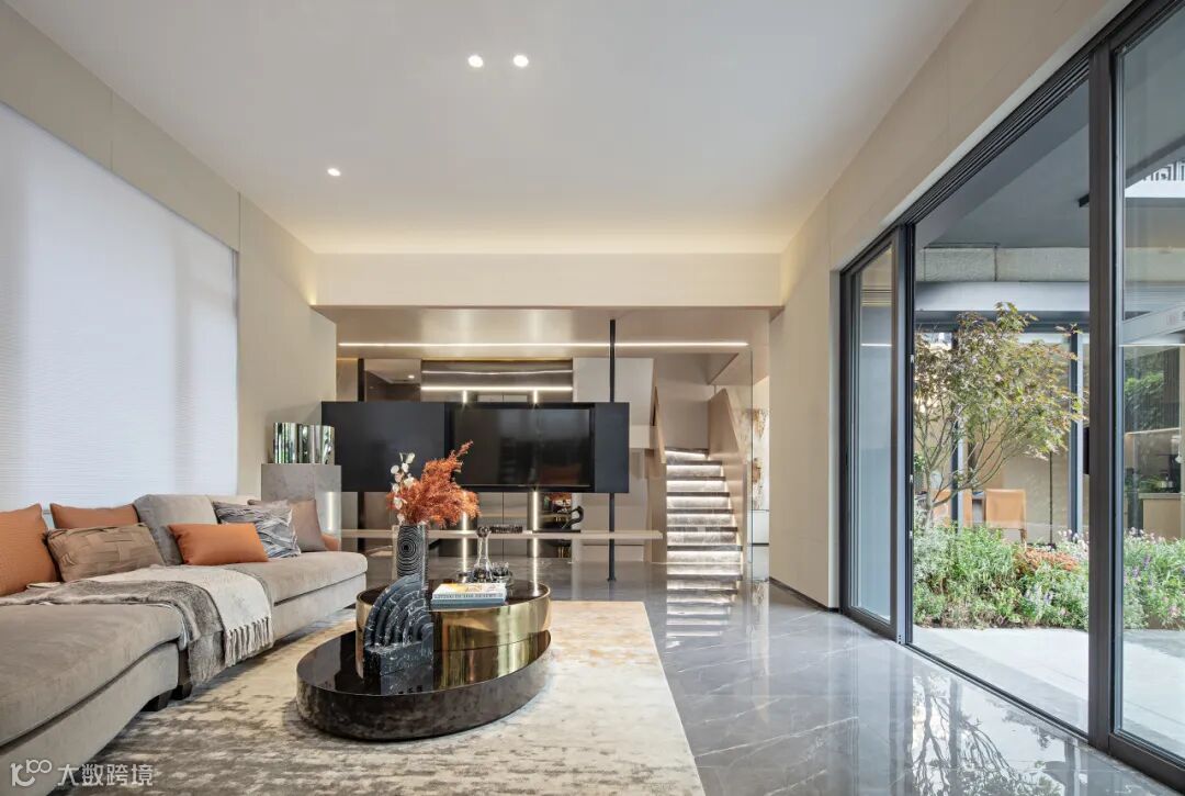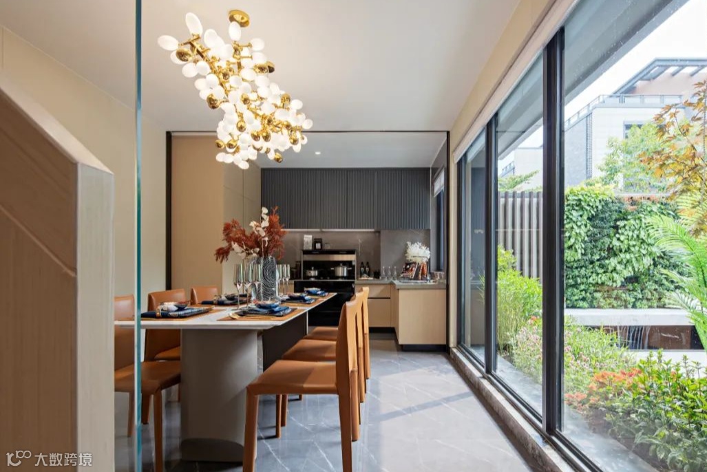 室外的自然光通过落地玻璃窗照射入别墅的内部,户内空间与户外景观融为一体,尽享西江舒适环境。