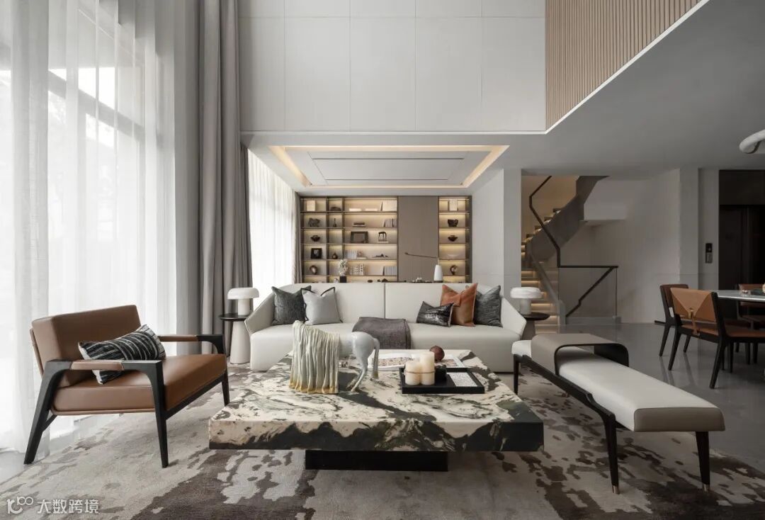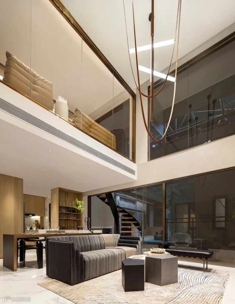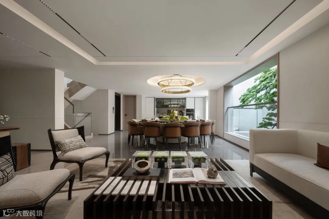 设计打造客餐厅一体,上部挑空,拉升视觉,同时开放空间和大面积观景面给人一种尽收人间烟火的生活感。