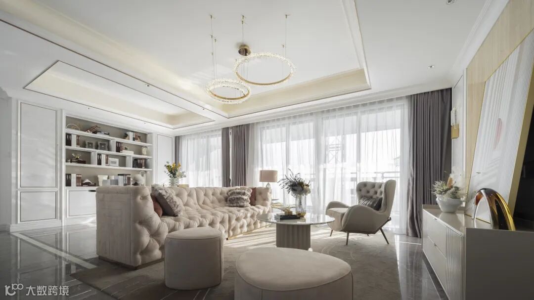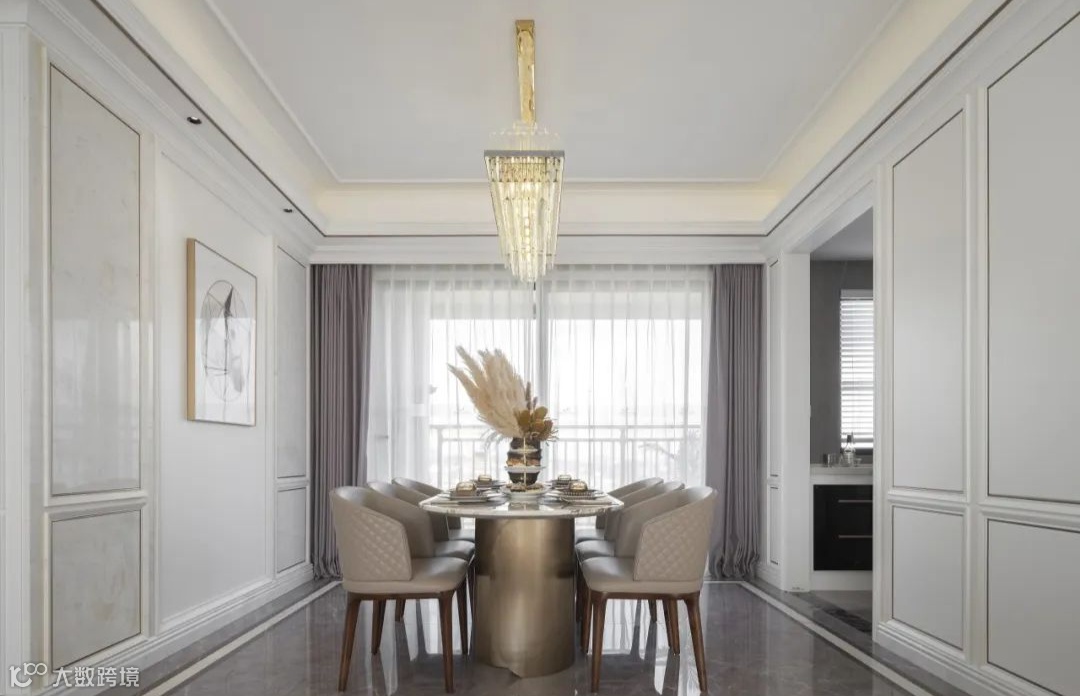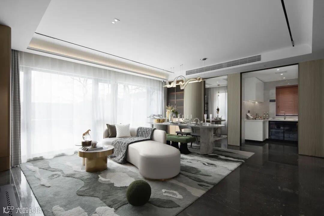 该室内设计以清新明亮的色调为主基调,搭配柔和的中性元素,为追求轻奢明亮生活方式的居住升级者,打造出一种宽敞通透的居住体验感。