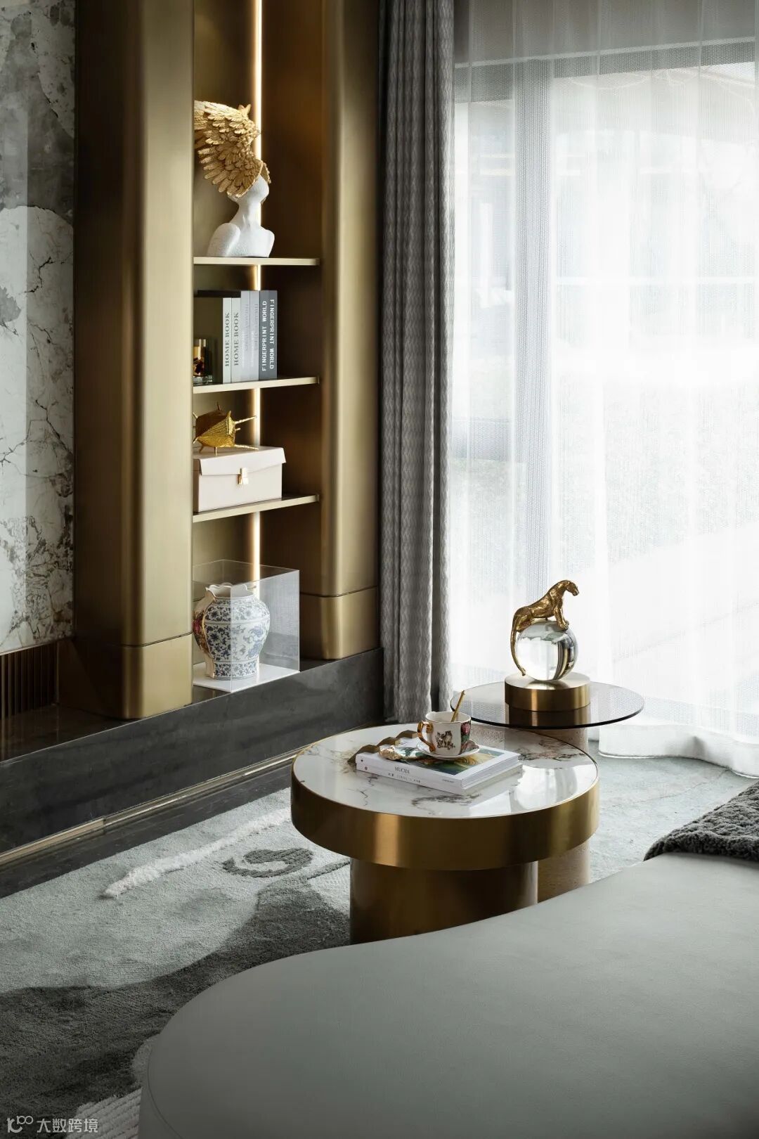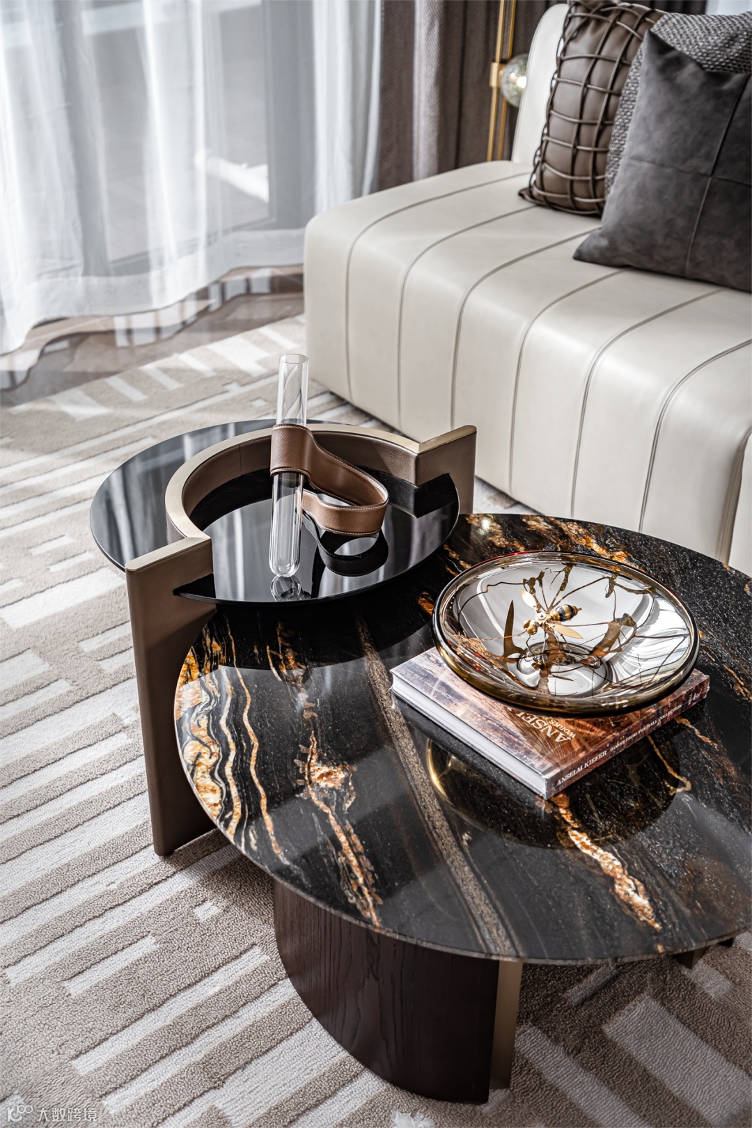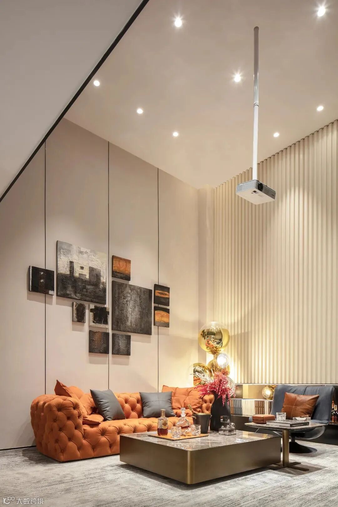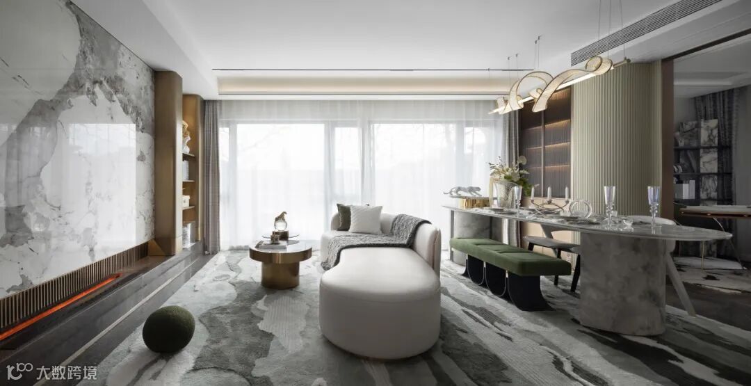 客厅以命运之轮探索人与人沟通交流,作为畅想人生的生活区域,采用高品质的家具以及饰品,打造出浪漫诗意的空间,延续高级订制在时尚前沿领域的先锋试验与孜孜探索。