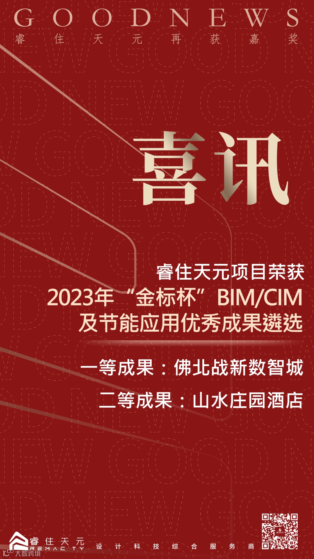 近日,由中国节能协会主办,全国智能建筑及居住区数字化标准化技术委员会(简称“全国智标委”)(SAC/TC426)指导的2024“BIM/CIM+双碳发展高峰论坛”暨“金标杯”节能应用优秀成果遴选发布活动在北京成果举办。恭喜广东天元建筑设计有限公司(睿住天元)凭借“零碳+装配式+BIM”智能建造综合技术的应用「佛北战新数智城」项目喜获金标杯一等成果,「山水庄园酒店」项目喜获金标杯二等成果!