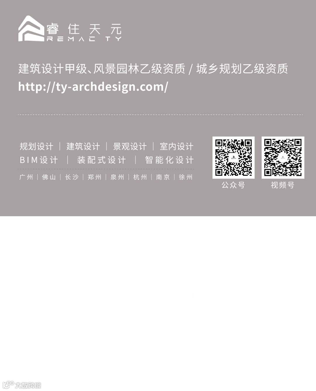 企业拥有建筑设计甲级、规划乙级资质、园林乙级资质。业务范围涵盖城市规划设计、建筑设计、景观设计、室内设计、土建施工图设计、装配式设计、智慧生活设计、乡村&康养产业化设计、EPC&全过程工程咨询服务。