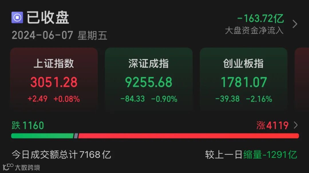 6月7日,市场全天震荡分化,沪指窄幅震荡。截至收盘,沪指涨0.08%,深成指跌0.9%,创业板指跌2.16%。板块方面,房地产