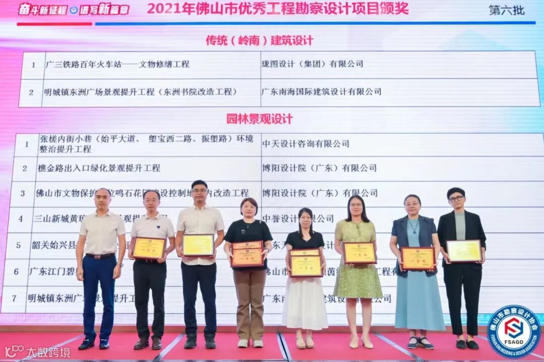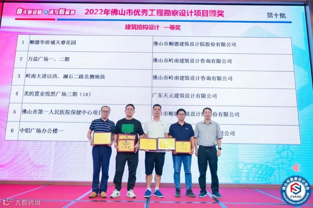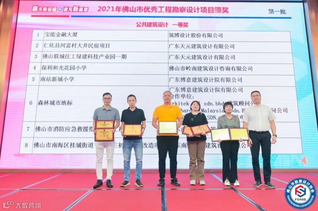 会上举行了《2021-2022佛山市优秀工程勘察设计一等奖》颁奖仪式,祝贺我司18个一等奖项目登台领奖。未来,我们将继续深耕“设计+科技”一体化技术,凭借独特的建筑全生命周期绿色数字化设计,打造更多质量优、水平高、效益好的优秀工程勘察设计项目。