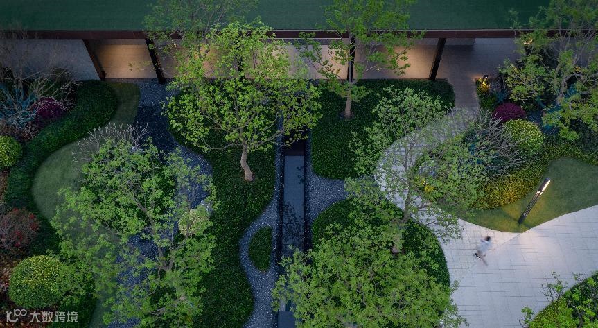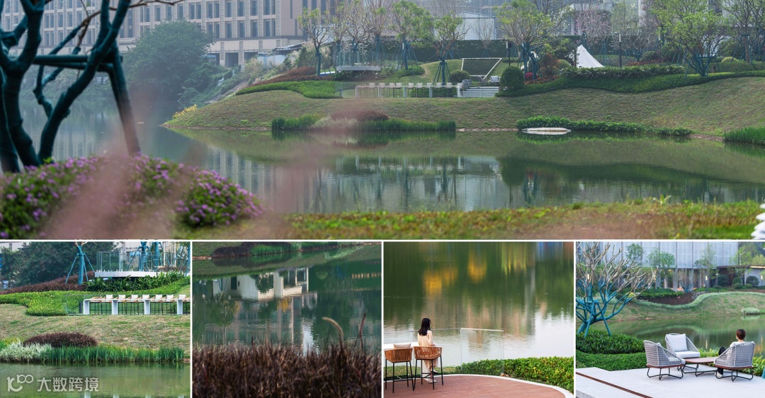 在佛山南海美的·滨湖学府项目的设计实践中,我们发现该项目所面对的人群地缘性较强,居民比较追求地域认同,因此我们基于场地本身的特性,将场地原有的湖泊水体资源予以放大,并依托这个资源核心展开地形、植被、水体构筑等场地要素的营造,最终形成一个与周边自然环境高度融合的亲自然湖滨开放花园。