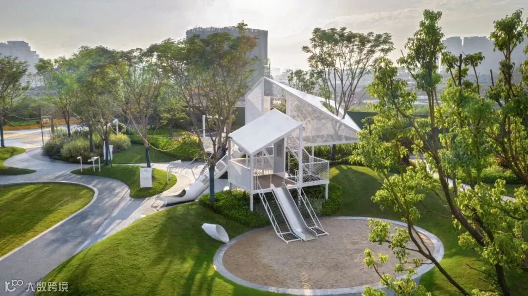 人居景观环境的营造,实际上是一个综合的系统,亲自然是我们重点关注的一个方向。近几年,我们也有一些项目尝试以融合自然,亲自然性为理念,像我们刚落地不久的美的置业顺德展厅公园,就是以亲自然为设计核心,其中设置的亲子球场,组合滑梯乃至整个展厅建筑,我们都是通过弱化硬质材料的应用,主要通过草坡地形,木桩,树林,草地,多年生花境等亲近自然的元素来打造整个空间,公园建成后,空间活力持续增加,这向我们展示了亲自然景观营造的场地对于城市开放空间及居民生活能产生持续性的正向价值。