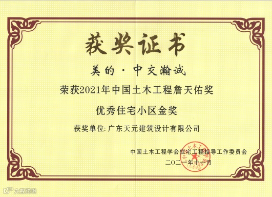 中国土木工程詹天佑奖优秀住宅小区金奖