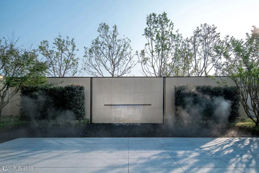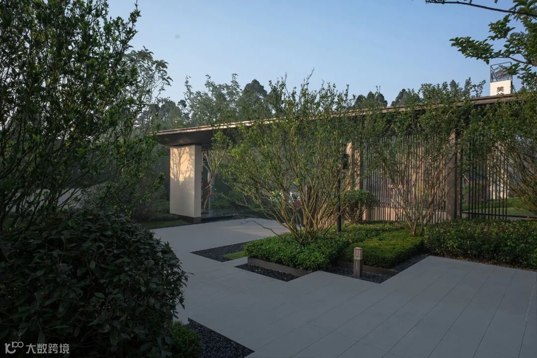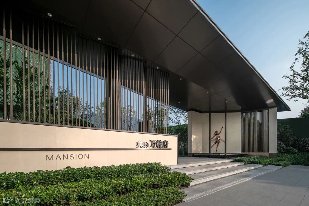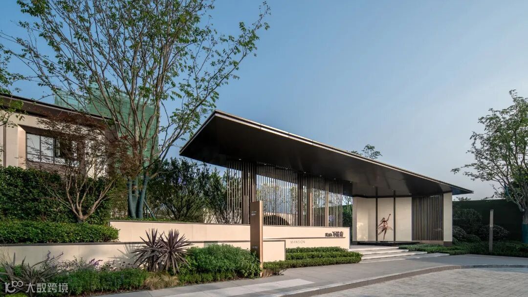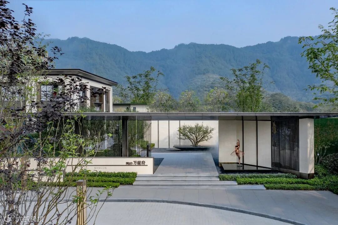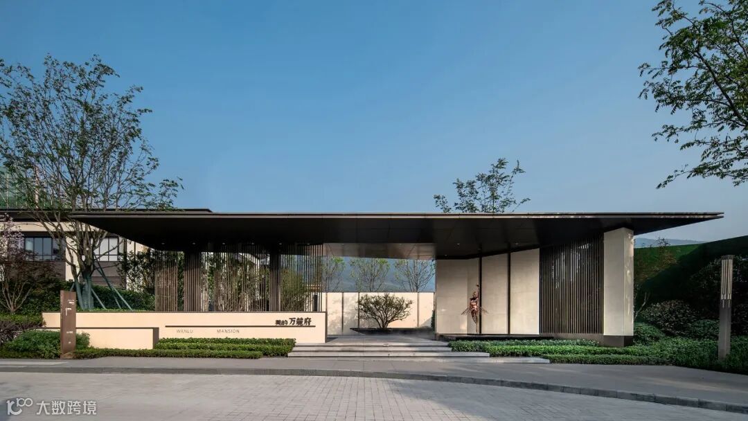 仪式感门楼结合延伸而出的景墙与栅格,